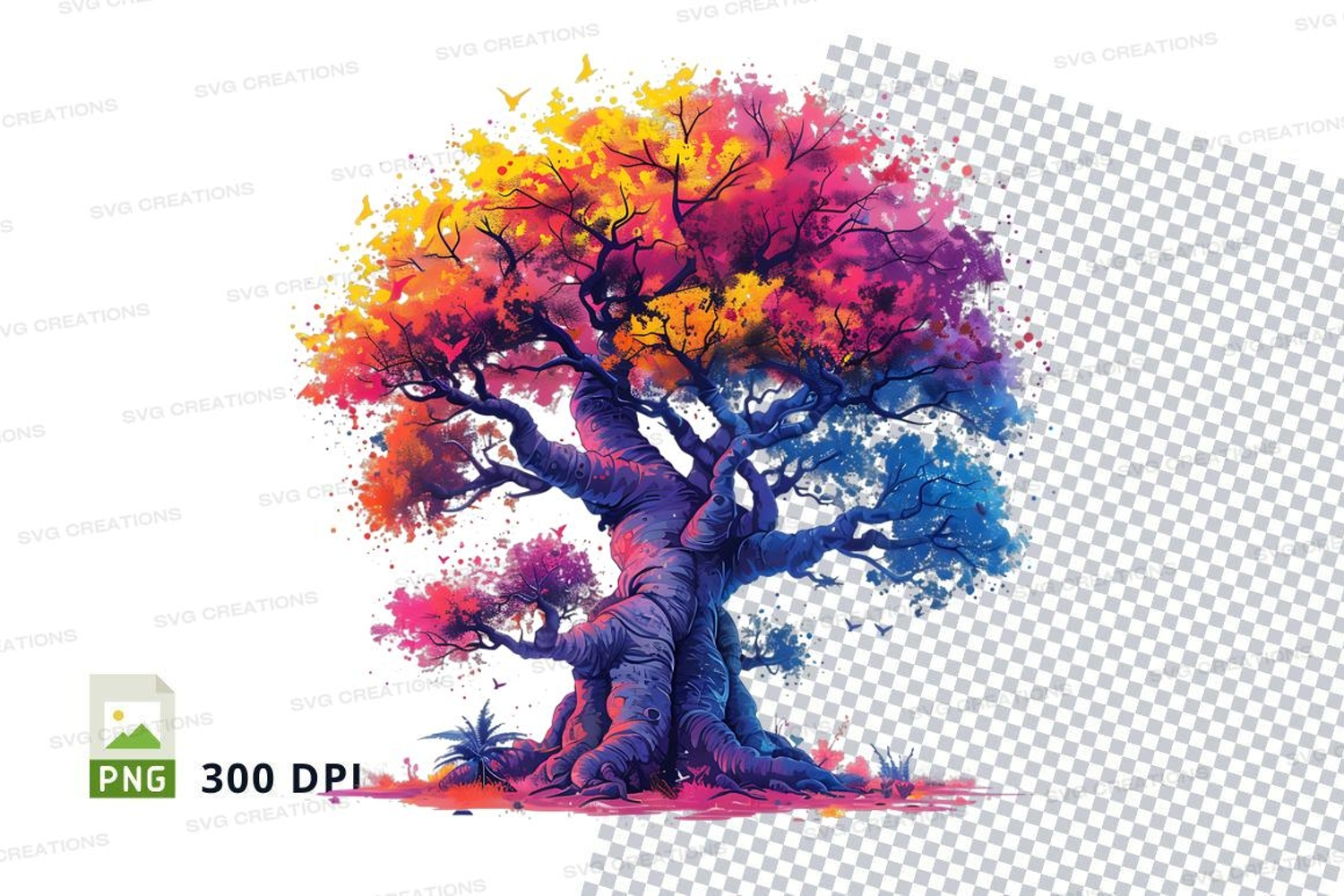 Illustration Tree Colorful Artistic Leaves Png Transparent Background 300 Dpi
