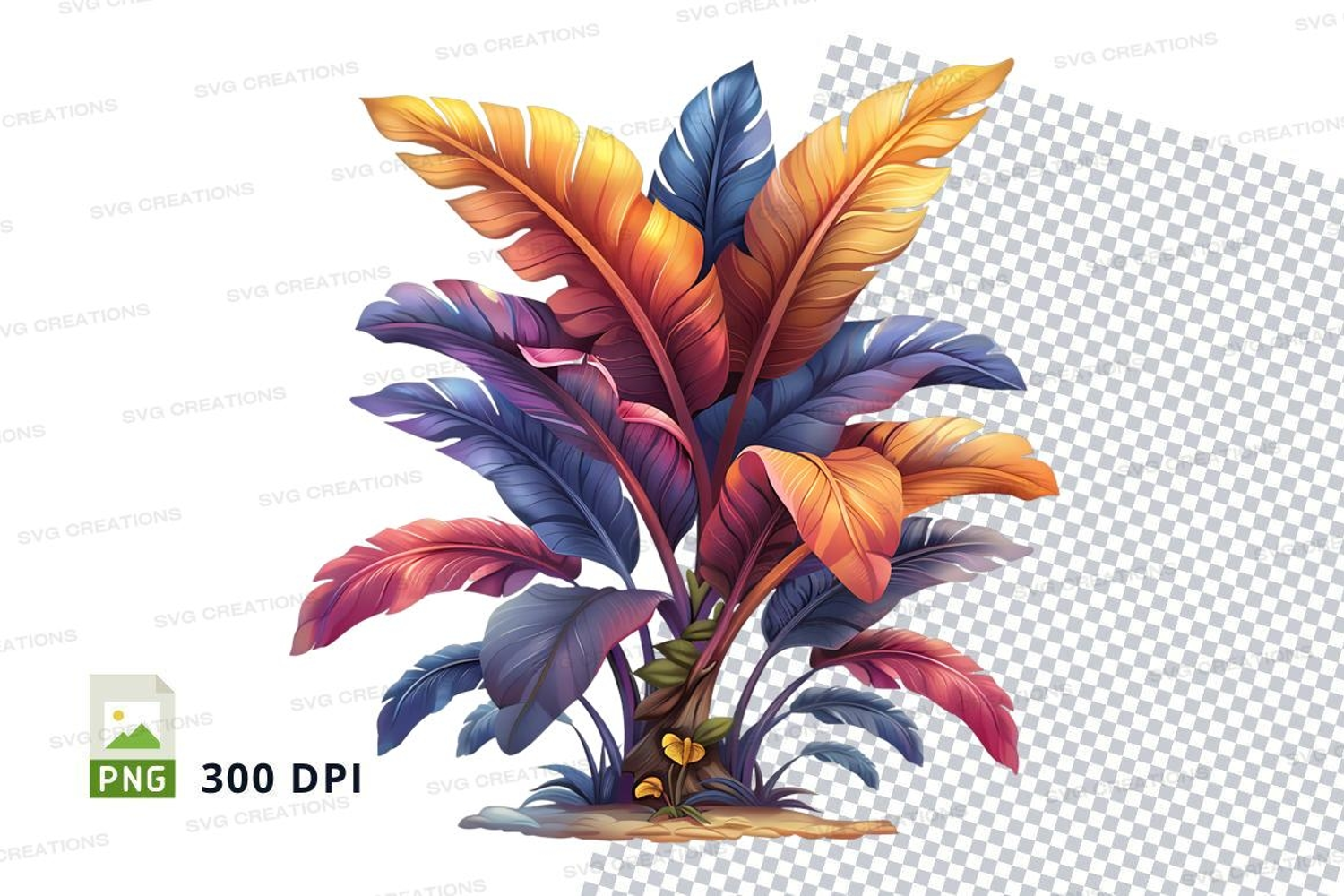 Png Transparent Background 300 Dpi Colorful Leaves Tropical Plant Plant Illustration