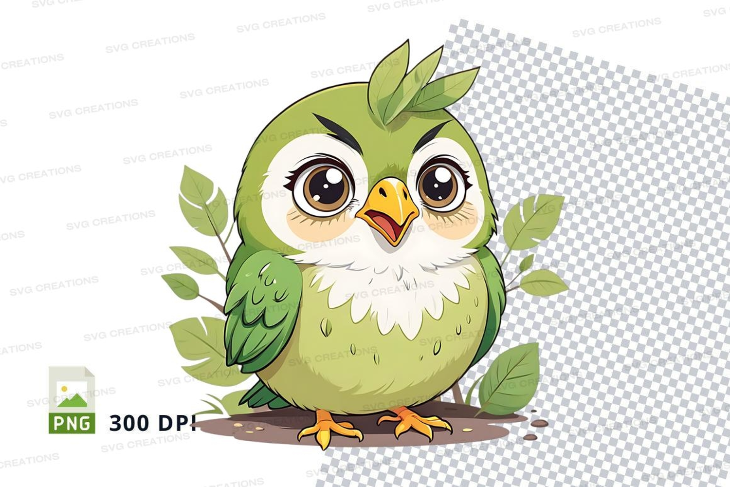 Cartoon Green Clipart Leaves Bird Owl Png 300 Dpi Expressive Eyes