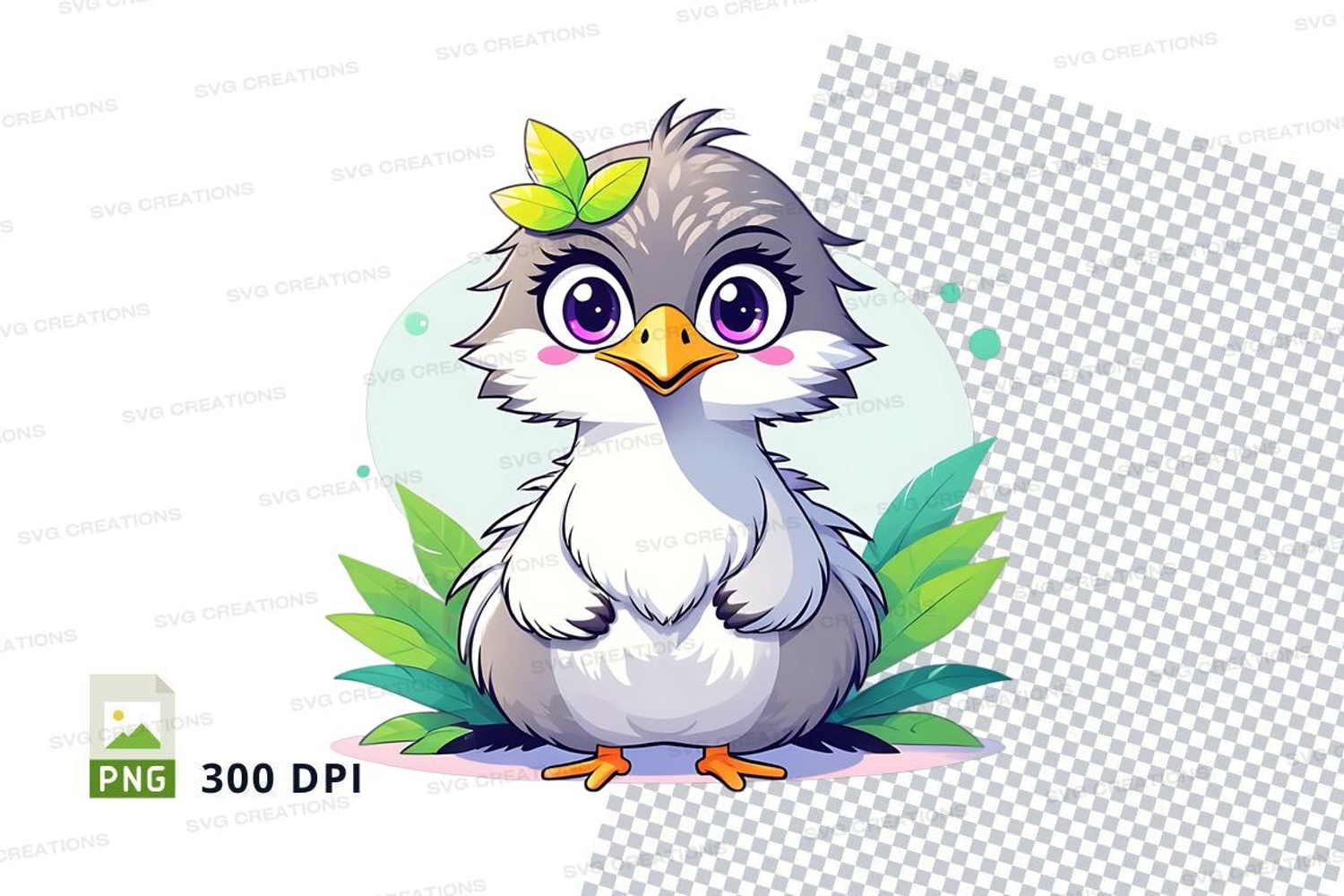 Cartoon Animal Cute Leaf Clipart Bird Png