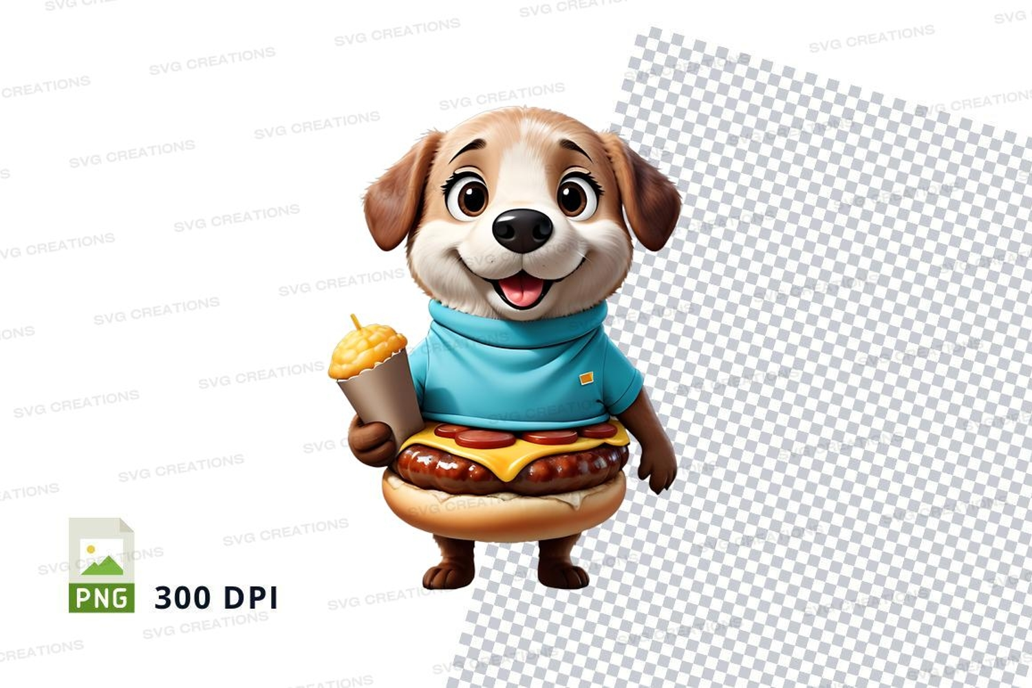 Similar Design Products to Cartoon dog holding hot dog clipart png
