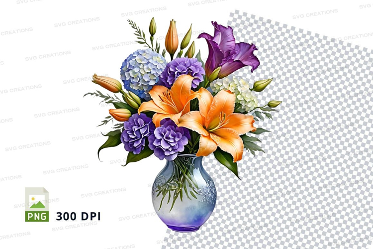 Flower Flowers Clipart Purple Orange Blue Bouquet Png Vase 300 Dpi