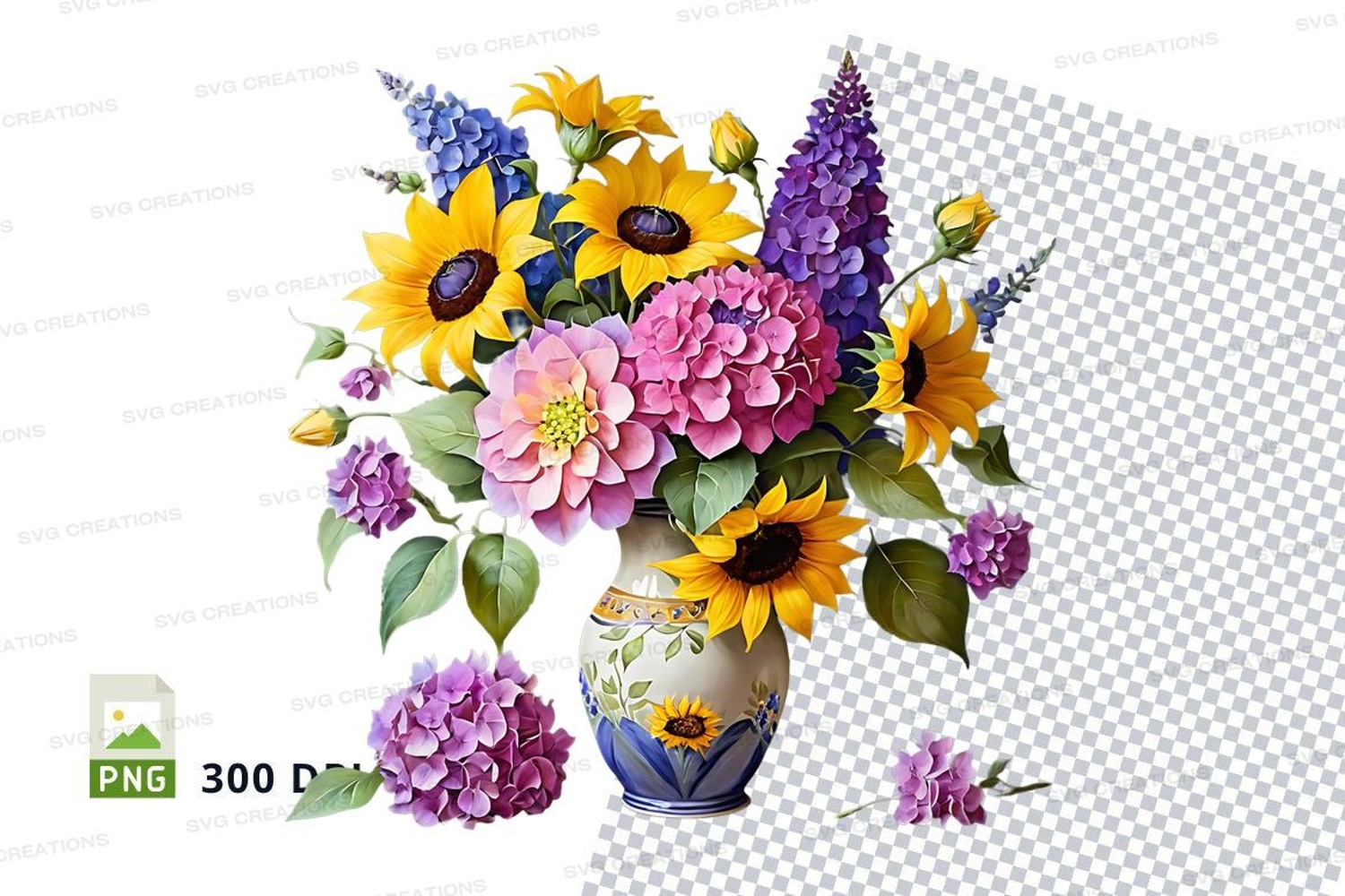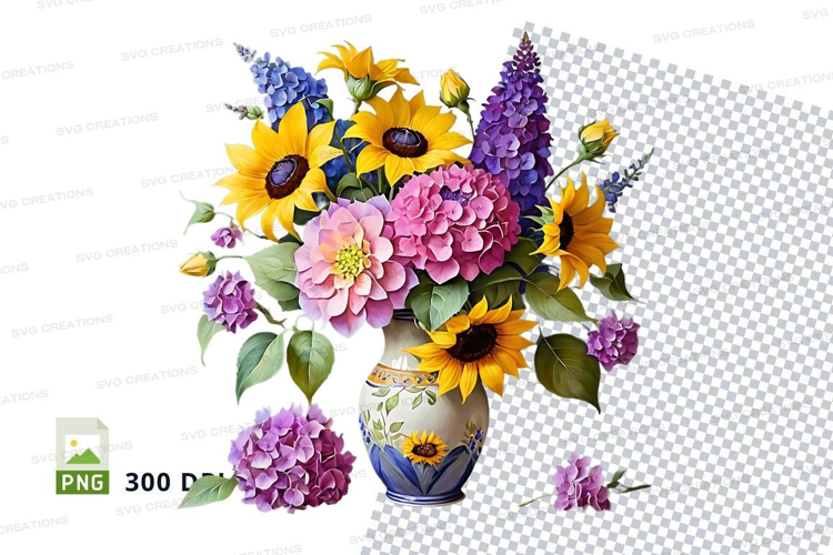 Decorative Nature Flower Clipart Hydrangea Bouquet Png Transparent Background Vase Sunflower