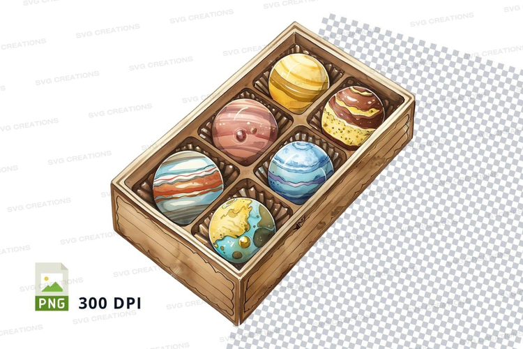 Packaging Mockup Transparent Background Chocolate Solar System Wooden Box 300 Dpi Planets