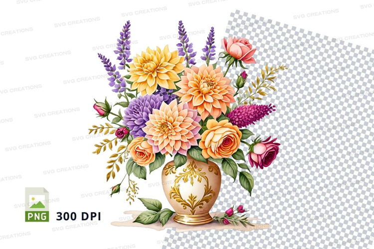 Floral bouquet in vase clipart png example image 1