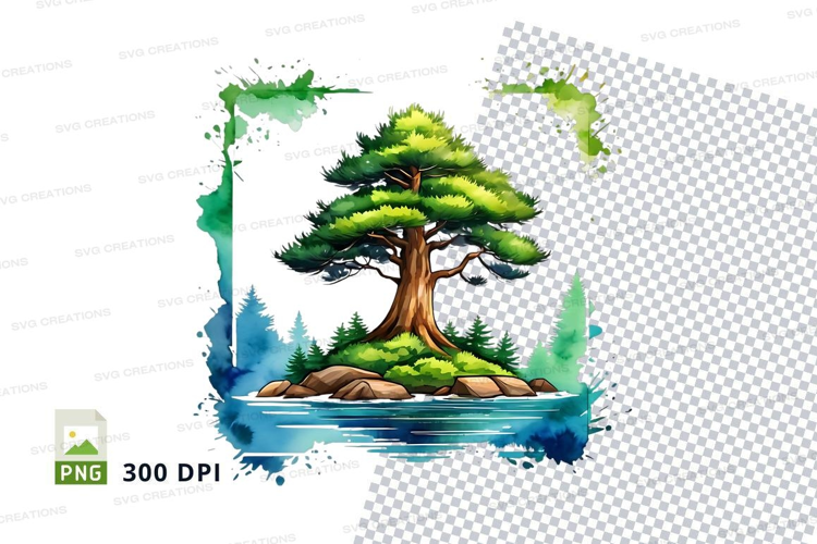 Watercolor Nature Tree Clipart Transparent Background Island 300 Dpi