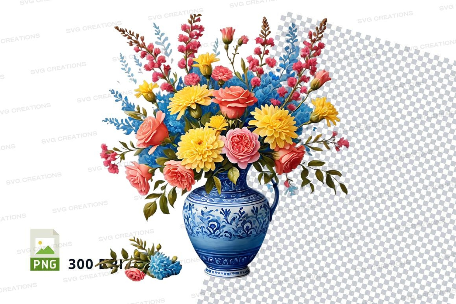 Similar Design Products to Floral bouquet in blue vase clipart png