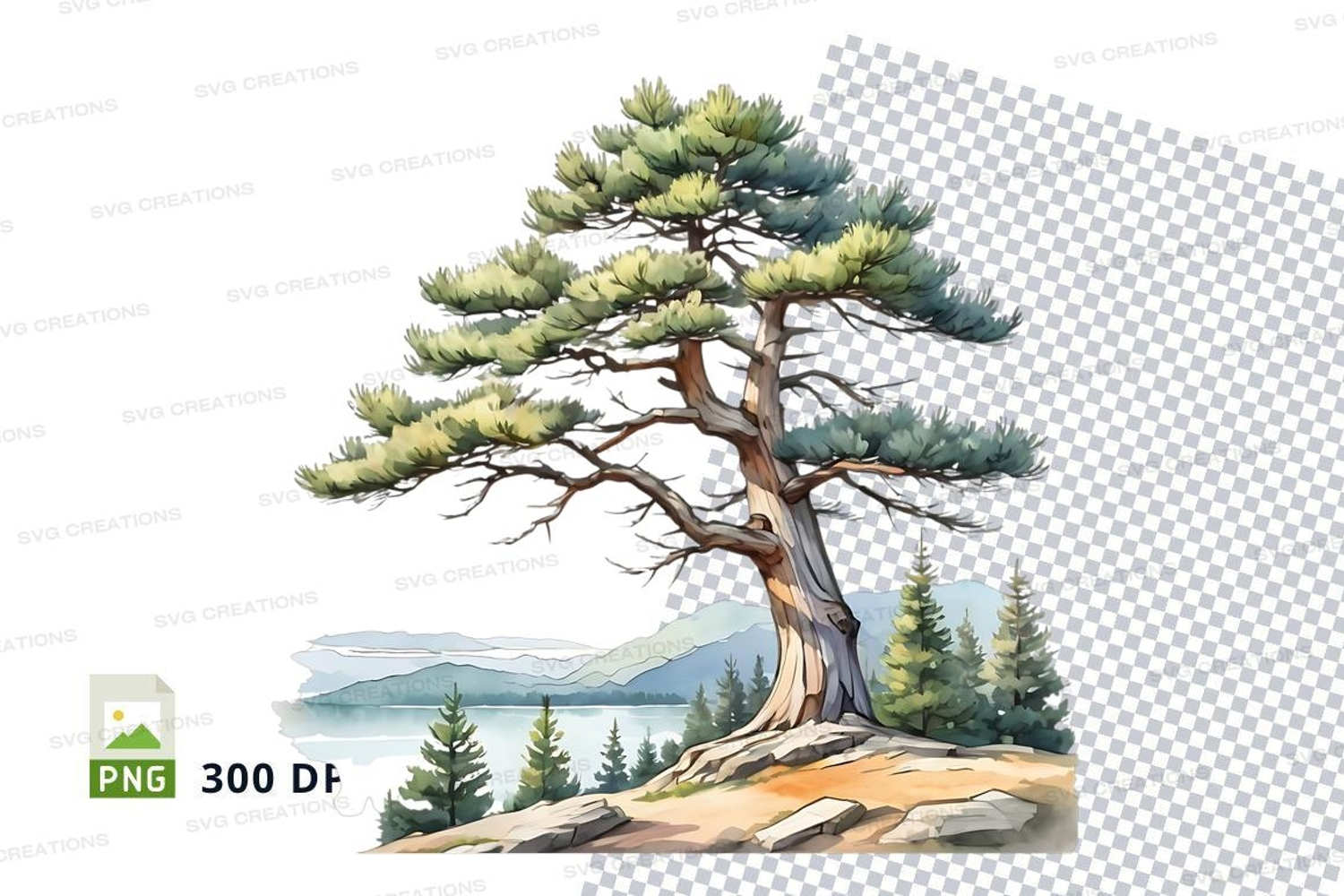 Watercolor Nature Mountains Clipart Lake Landscape Pine Tree Transparent Background Rocky Outcrop