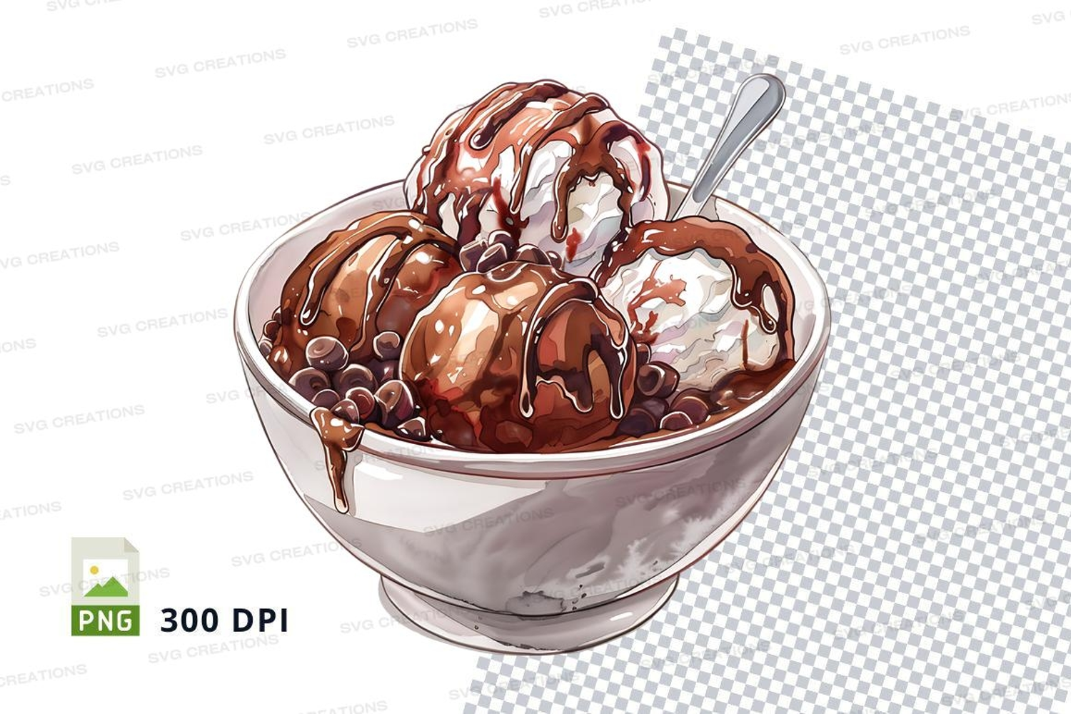 Ice cream scoops with chocolate sauce clipart png example image 1
