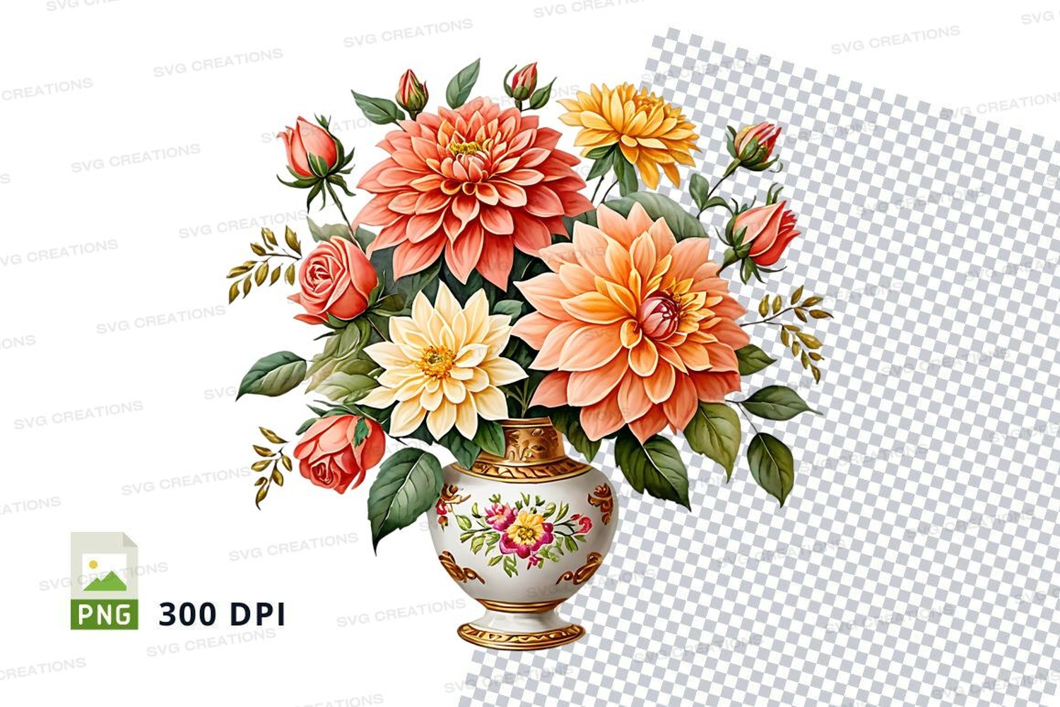 Decorative Flower Rose Dahlia Bouquet Transparent Background Vase 300 Dpi