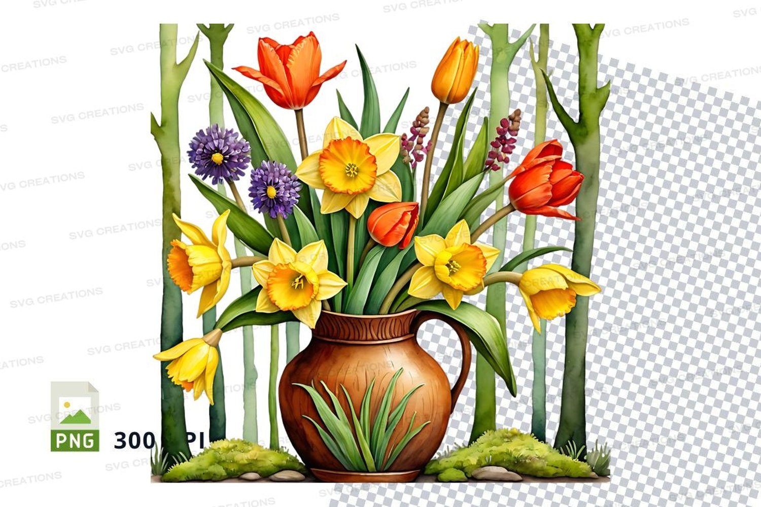 Spring Nature Flower Clipart Decoration Bouquet Png Daffodil Tulip Vase