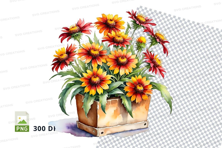 Watercolor flower bouquet in metal bucket clipart png example image 1