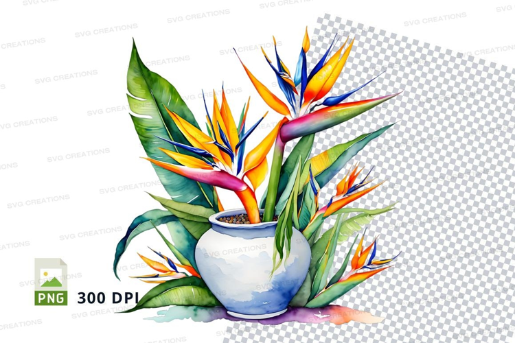 Watercolor bird of paradise flower in vase png example image 1