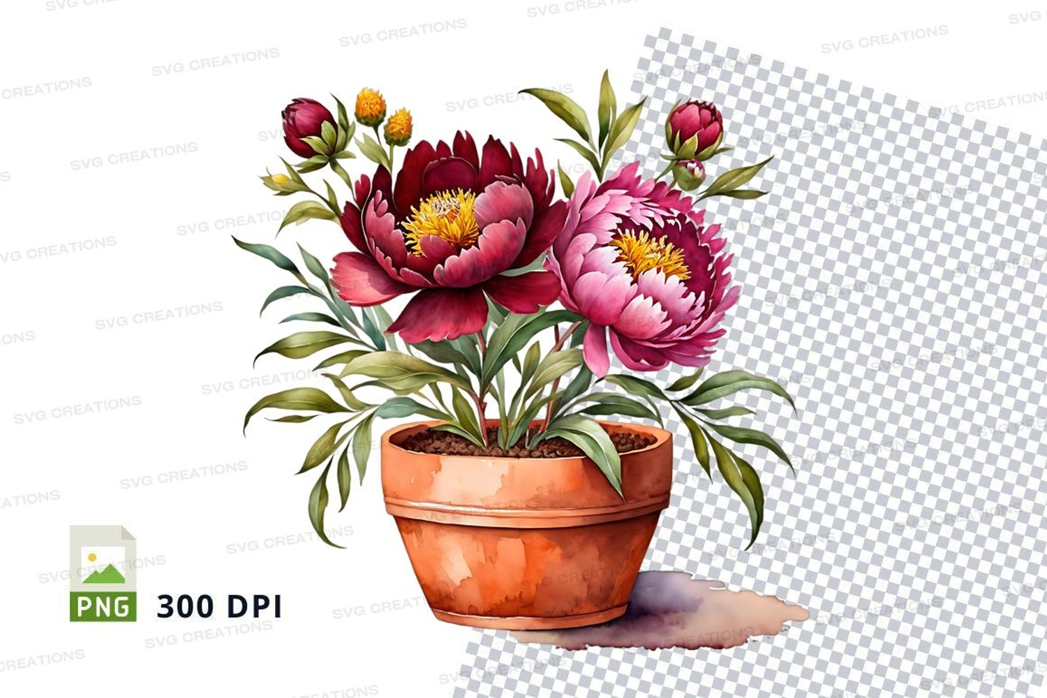Watercolor Flowers Clipart Peonies Png Transparent Background Plants Pot 300 Dpi