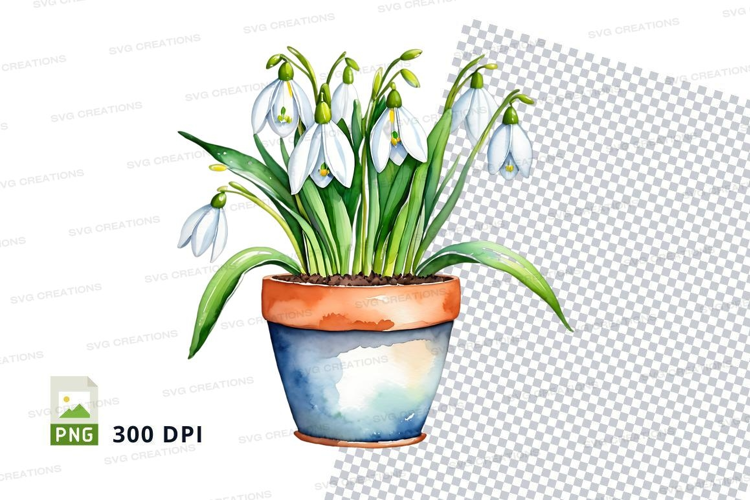 Watercolor snowdrop flowers in pot clipart png example image 1