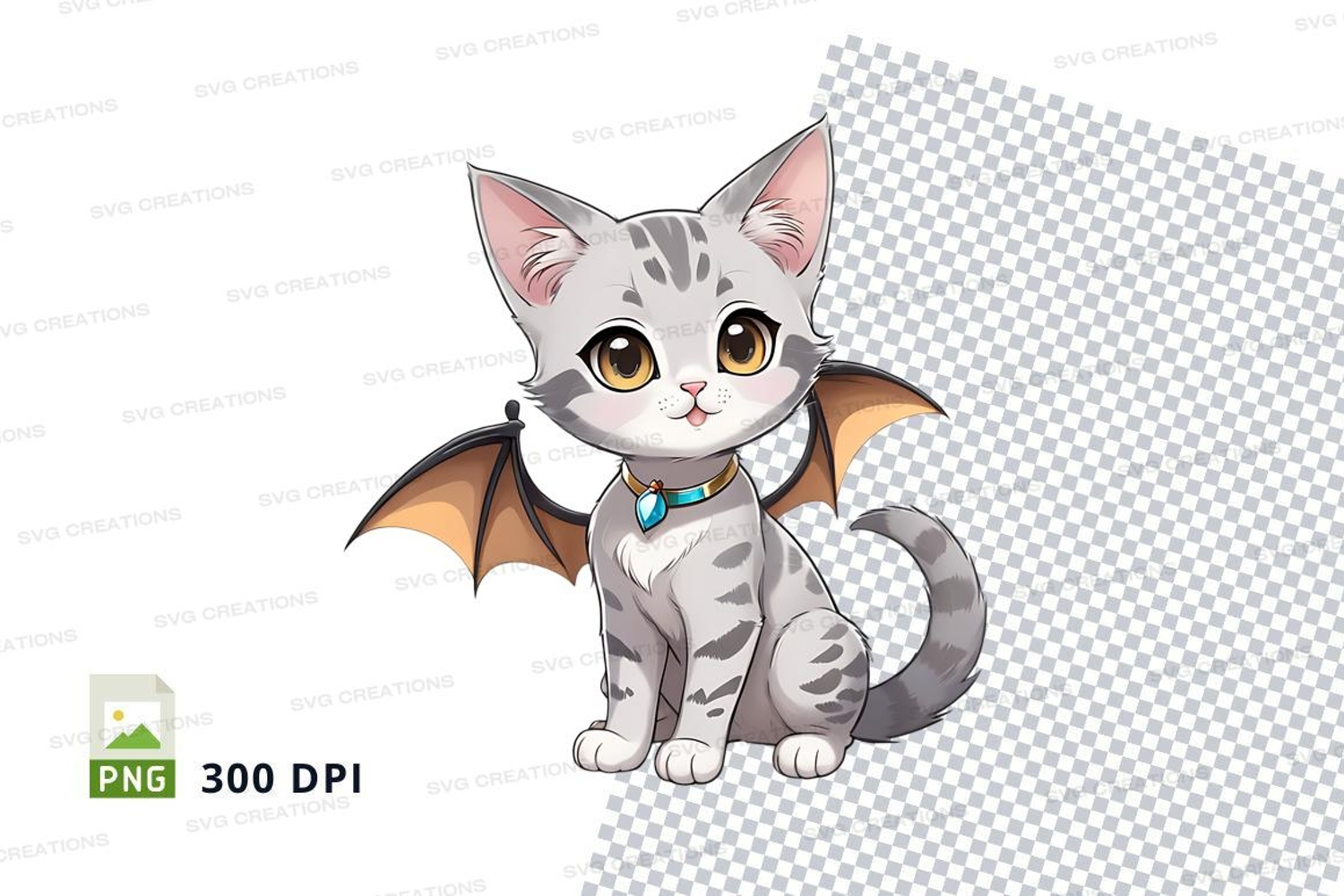 Cartoon Animal Cute Clipart Png White Gray Kitten Wings Blue Collar