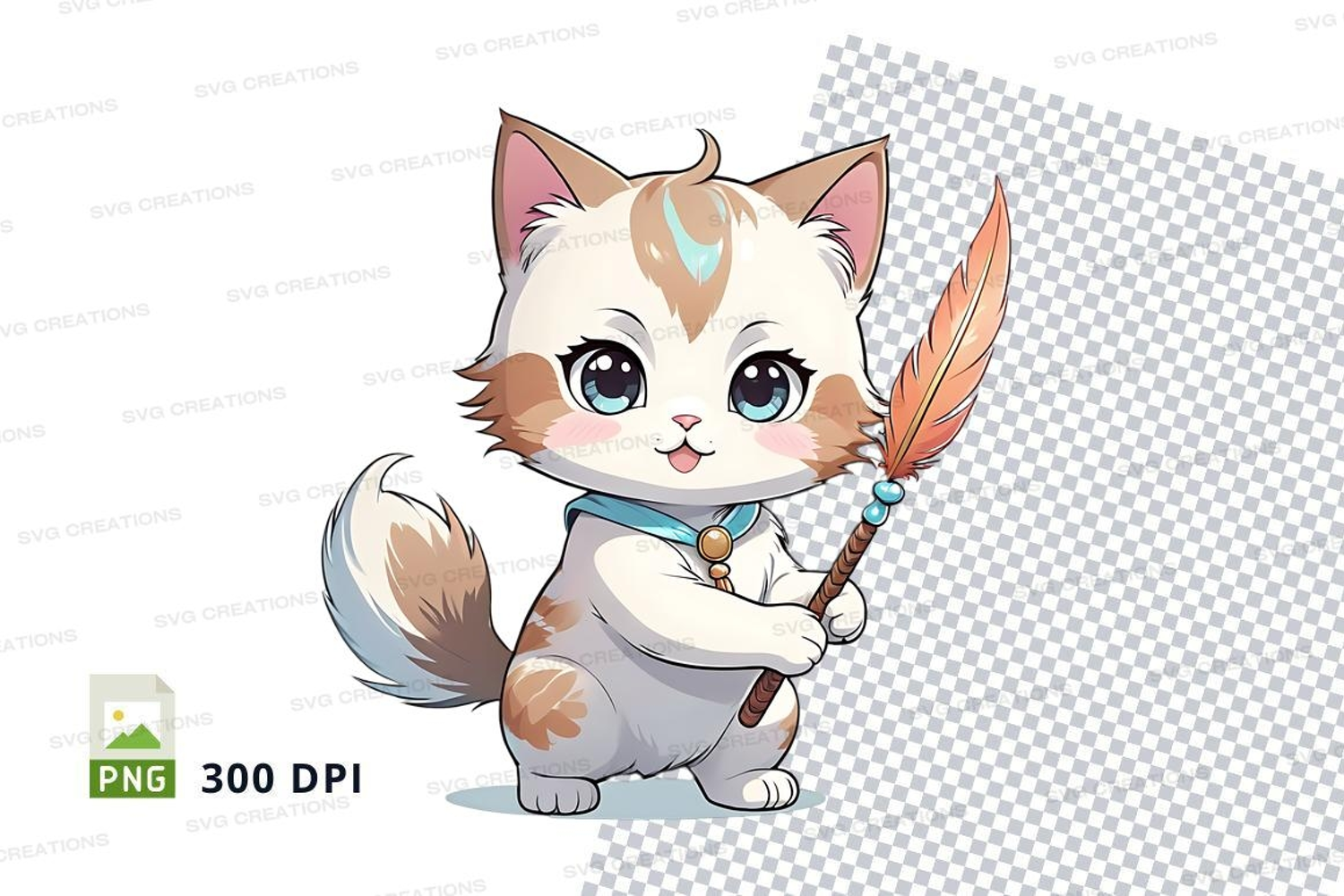 Illustration Cartoon Cute Clipart Cat Kitten Feather Wand