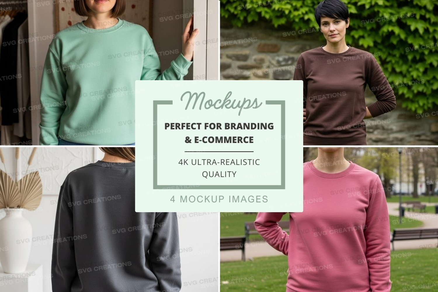 Black Pink Mockup Brown Teal Sweatshirt Models Crew Neck Long-sleeve Casual Wear