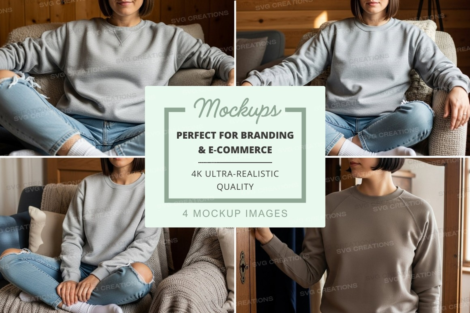 Similar Design Products to Group of women wearing crew neck sweatshirts in a living roo