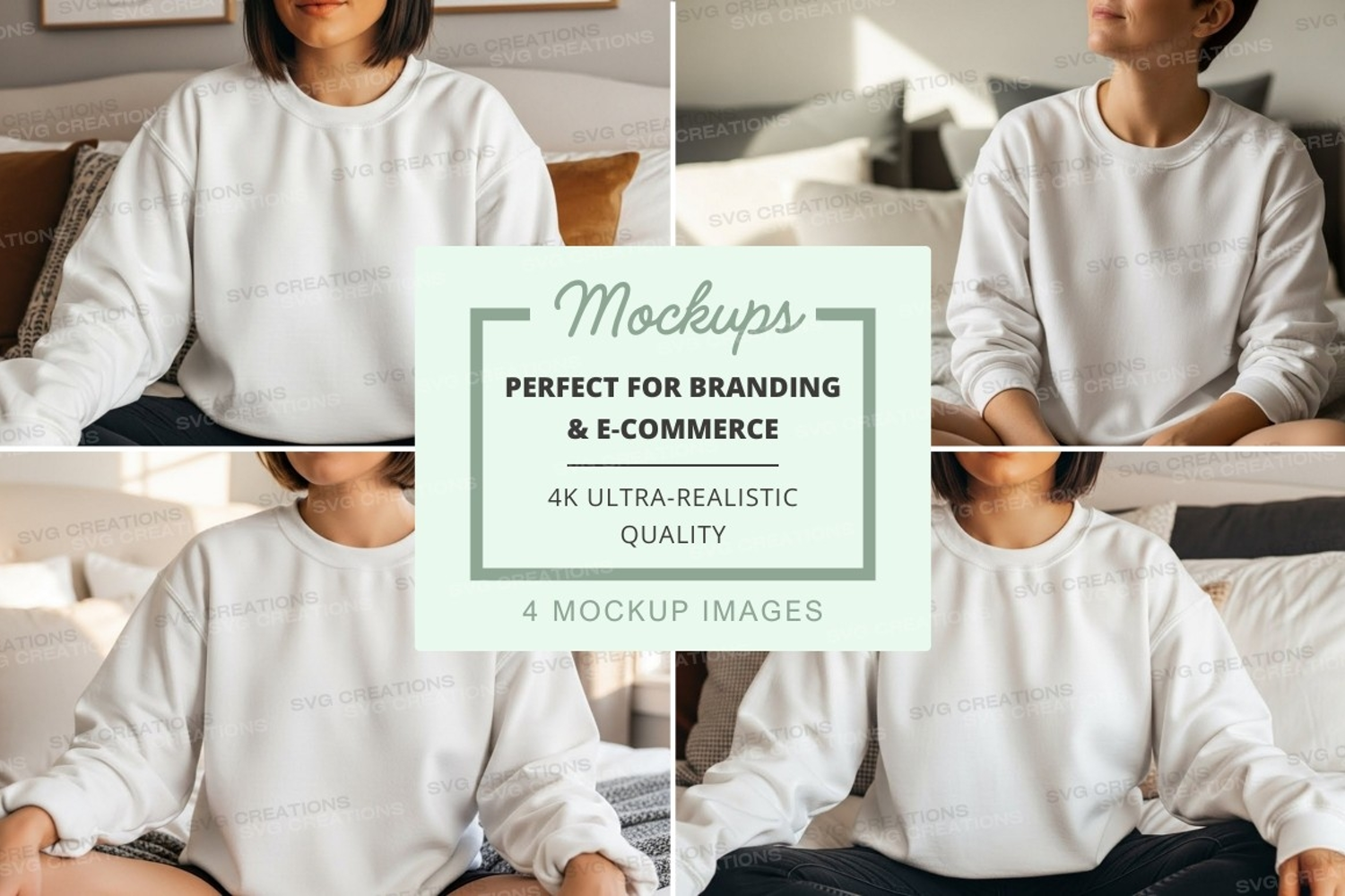Mockup Collage Model Neutral Background White Sweatshirt Indoor Setting