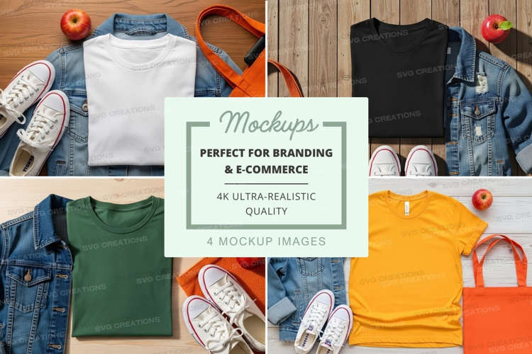 T-shirt Mockup Apparel Accessories Flat Lay Sneakers Tote Bag Denim Jacket