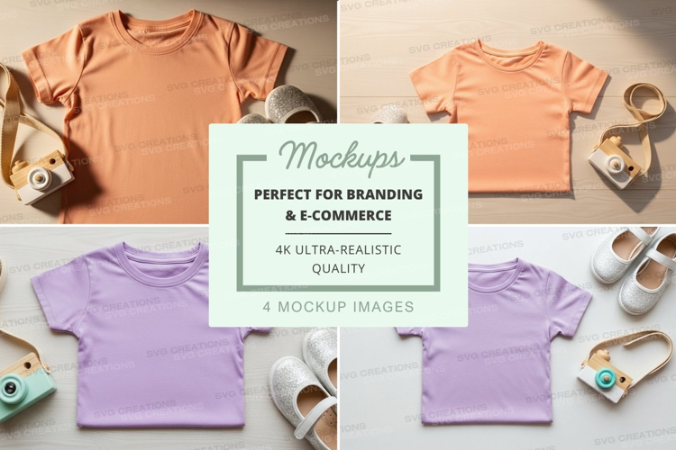 Mockup Purple Orange Toy Camera Accessories Shoes Children's T-shirt