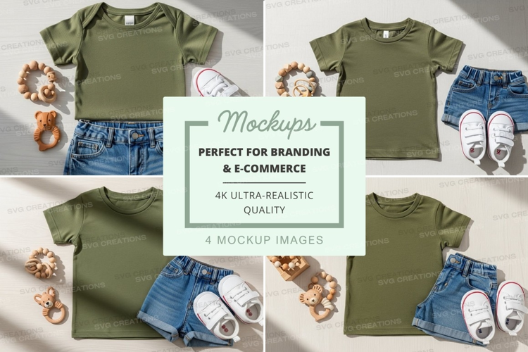 Mockup Toys Accessories Sandals Bracelets Denim Shorts Green T-shirt Children's T-shirt