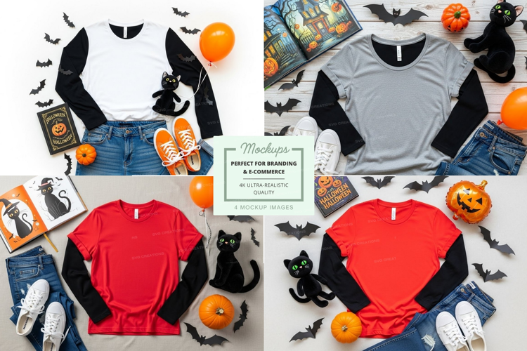 Halloween Design T-shirt Mockup Bat Cat White Red Pumpkin Gray
