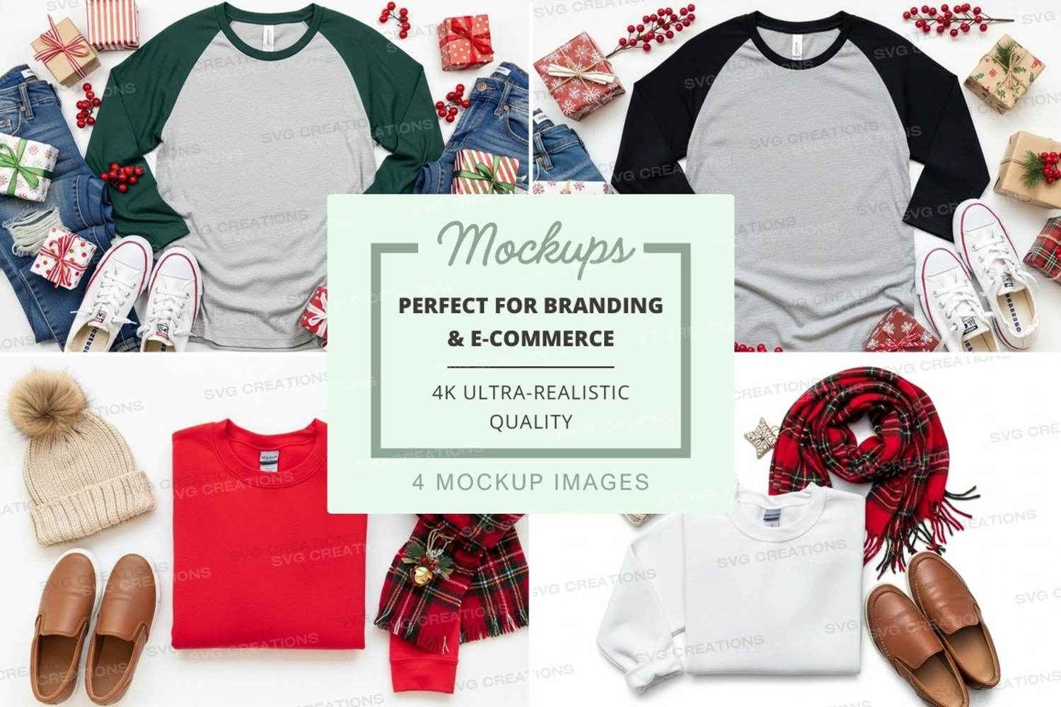 Holiday T-shirt Christmas Mockup Scarf Hat Accessories Sweater
