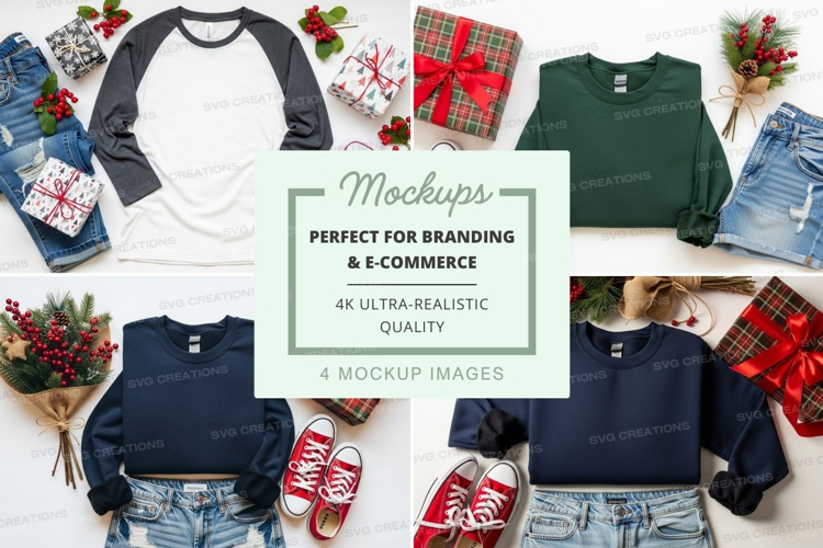 Holiday Christmas Mockup Apparel Jeans Slippers Decorations Sweatshirts