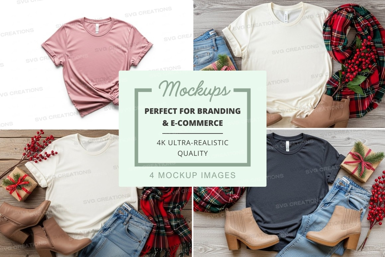 Holiday T-shirt Mockup Scarf Gift Box Accessories Festive Boots