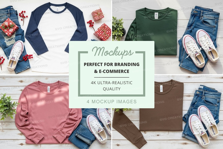Similar Design Products to Flat lay mockup of long sleeve t-shirts, jeans, and sneakers