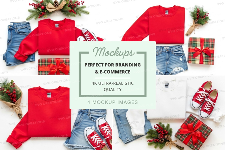 Holiday Green Christmas Mockup Apparel Gifts Red Sneakers Sweatshirt Denim Shorts