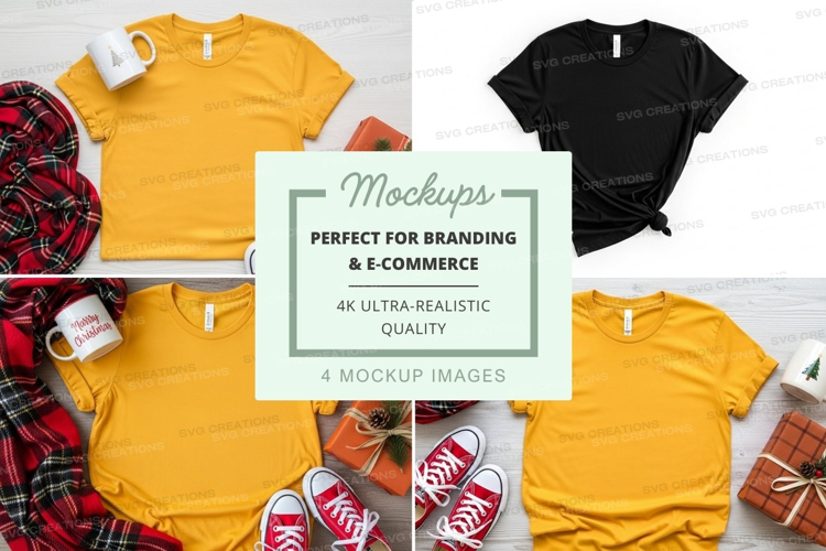 Scarf Gift Box Shoes Christmas Decorations T-shirt Mockup Holiday Elements Black T-shirt Unisex T-shirt Yellow T-shirt