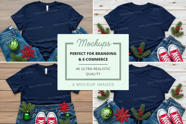 Ornament Holiday Christmas Mockup Navy Blue Poinsettia Tote Bag Denim Shorts
