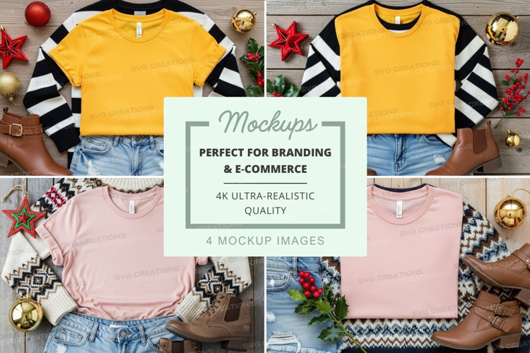Similar Design Products to Mockup of yellow and pink t-shirts with holiday decorations