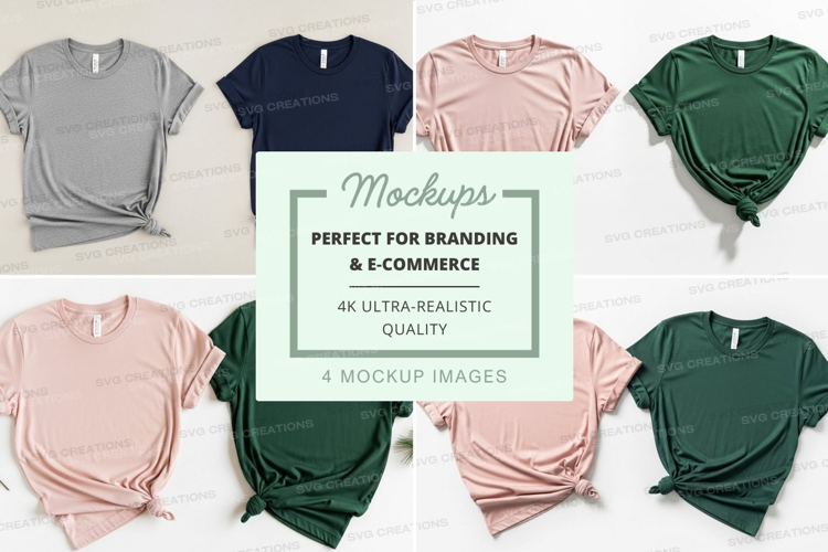 T-shirt Mockup Gray Navy Blue Flat Lay Light Green Light Pink Dark Green Bella Canvas Crew Neck