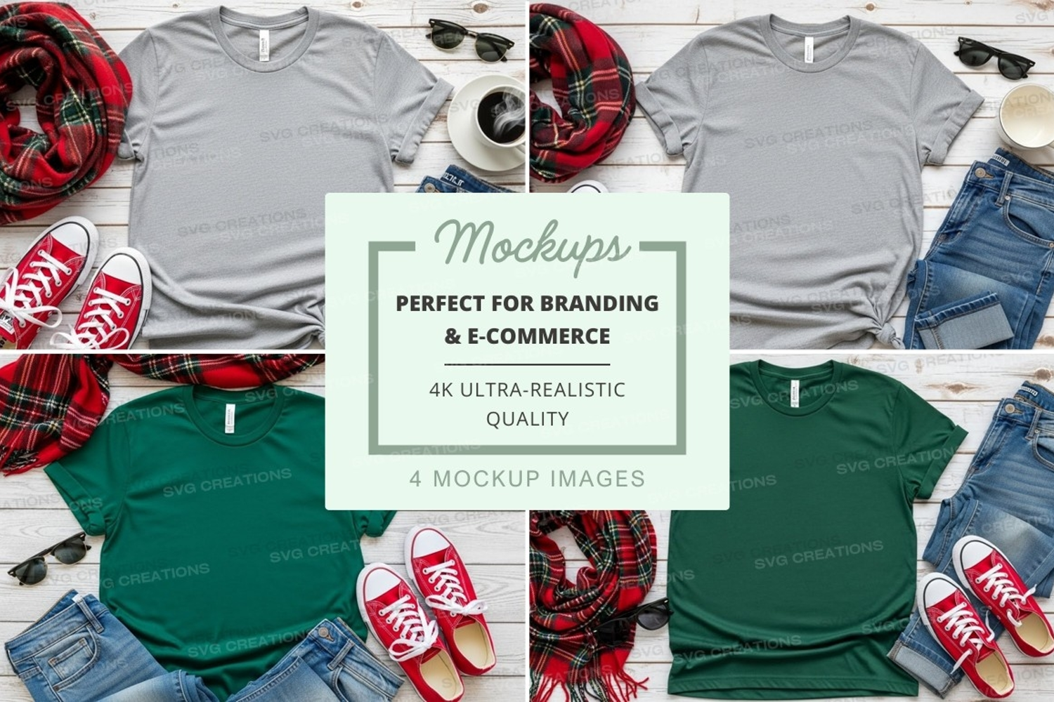 T-shirt Jeans Accessories Sunglasses Flat Lay Sneakers T-shirt Mockup Scarves Gray T-shirt Green T-shirt