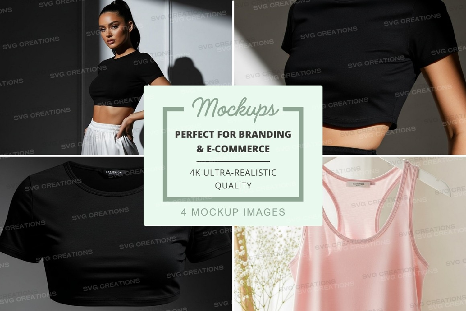 Mockup Model Flat Lay Hanger Racerback Crop Top Pink Crop Top Black Crop Top