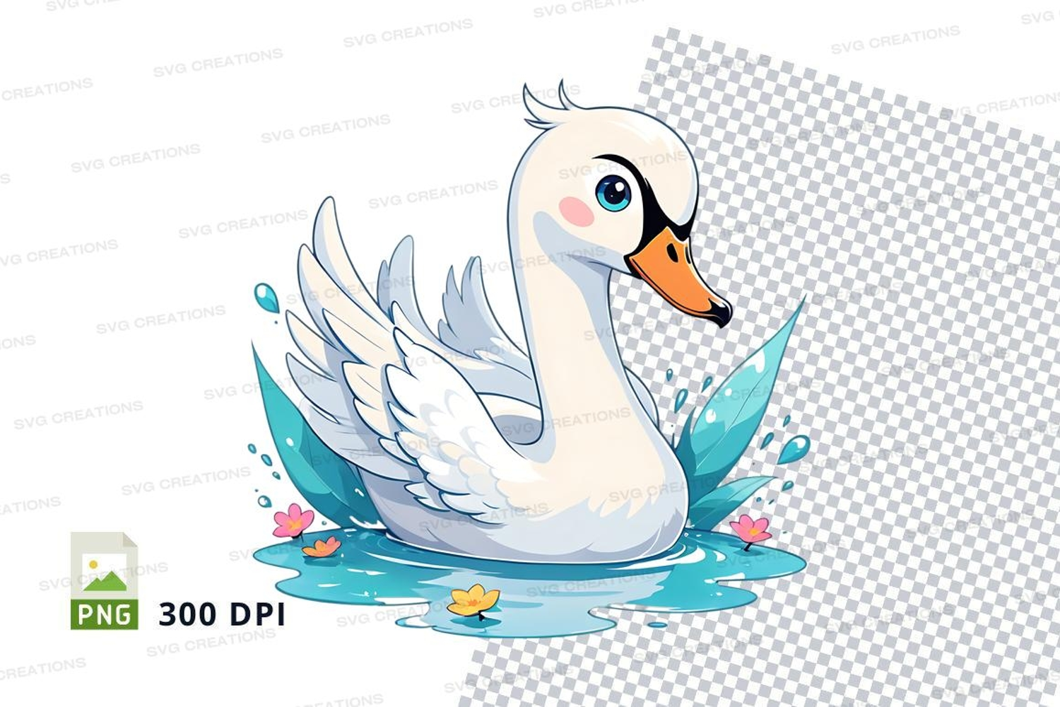 Illustration Cartoon Water Splash Clipart Transparent Background Swan 300 Dpi Lily Pads