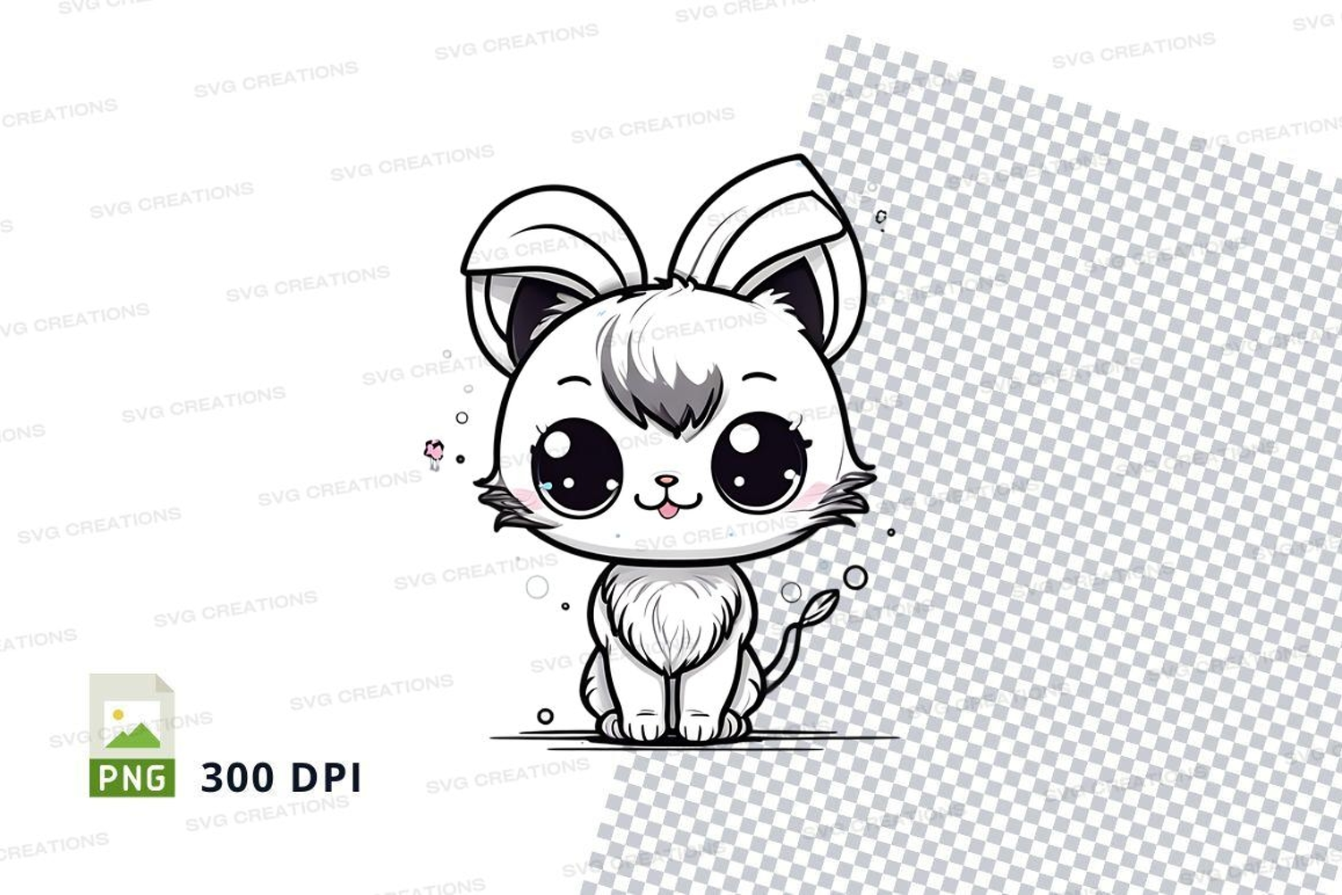 Illustration Cartoon Black And White Clipart Png Cat Bunny Ears Large Eyes