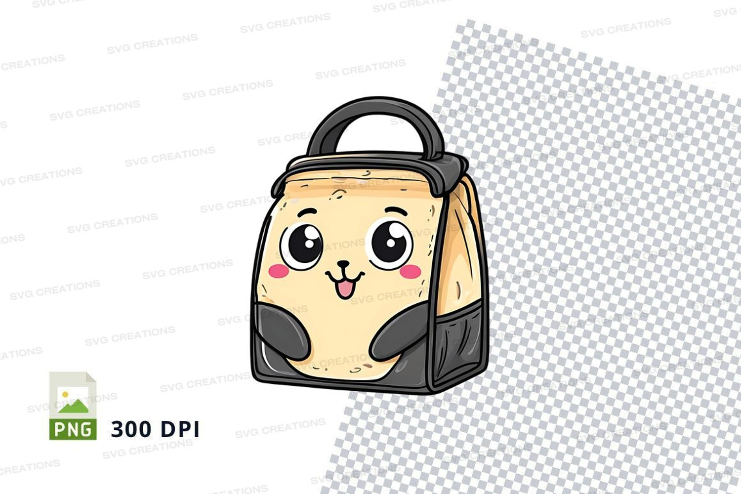 Cartoon Black Cute Mockup Face Beige Png Backpack 300 Dpi High-resolution