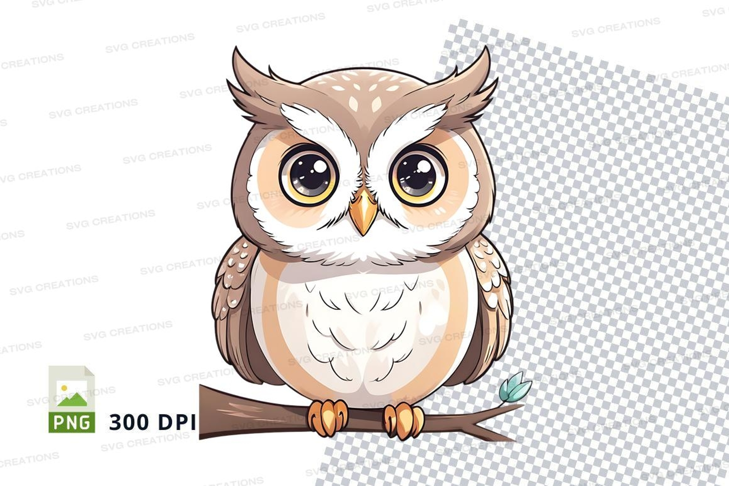 Cartoon Animal Friendly Clipart Branch Bird Owl Png Expressive Eyes