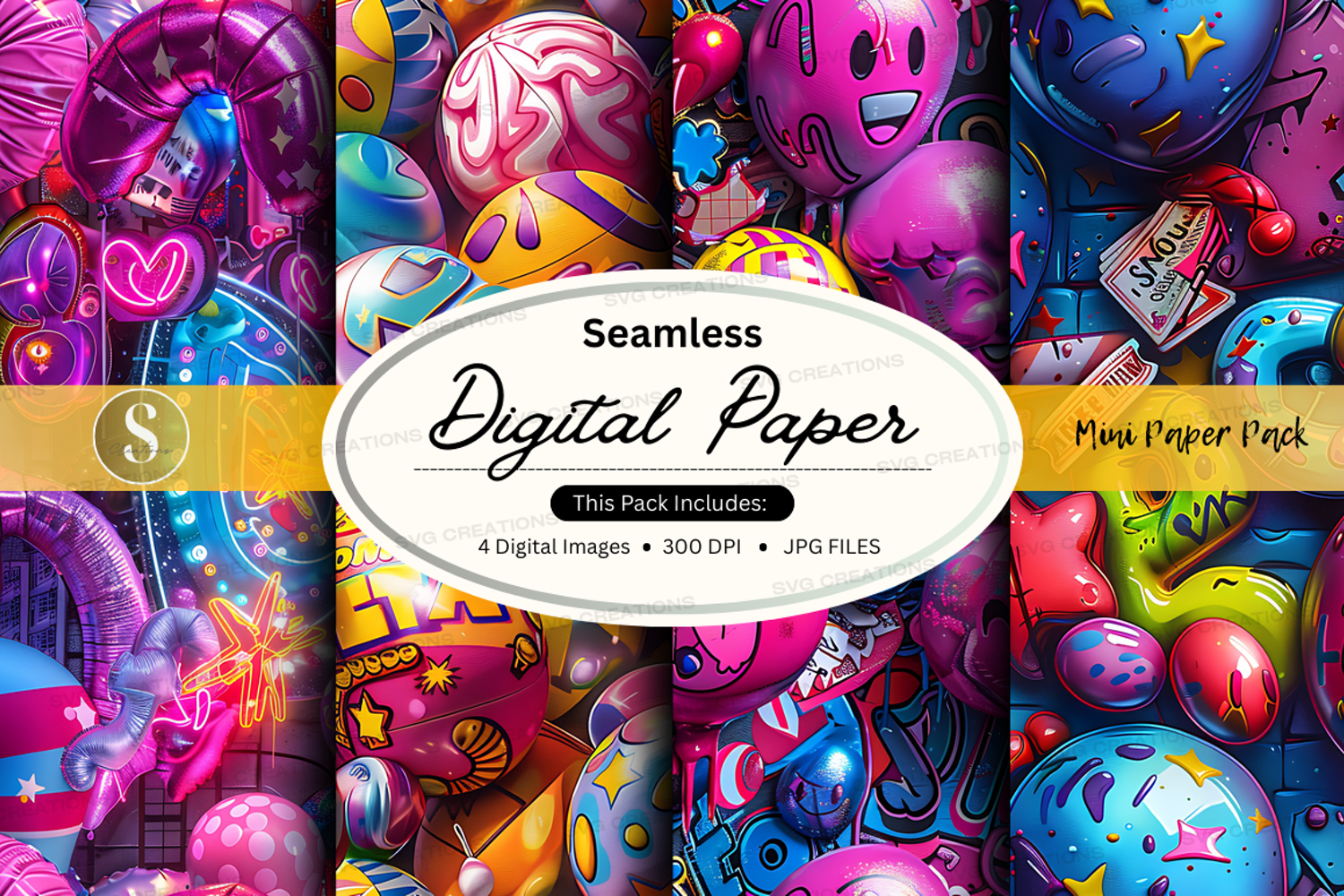 Neon Colorful Pattern Digital Paper Background Seamless Jpeg 300 Dpi