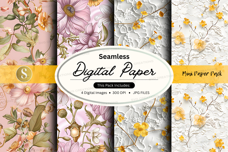 Digital Paper Floral Design 300 Dpi Pastel Colors Textured Paper Seamless Paper Jpeg Files Mockup Pack