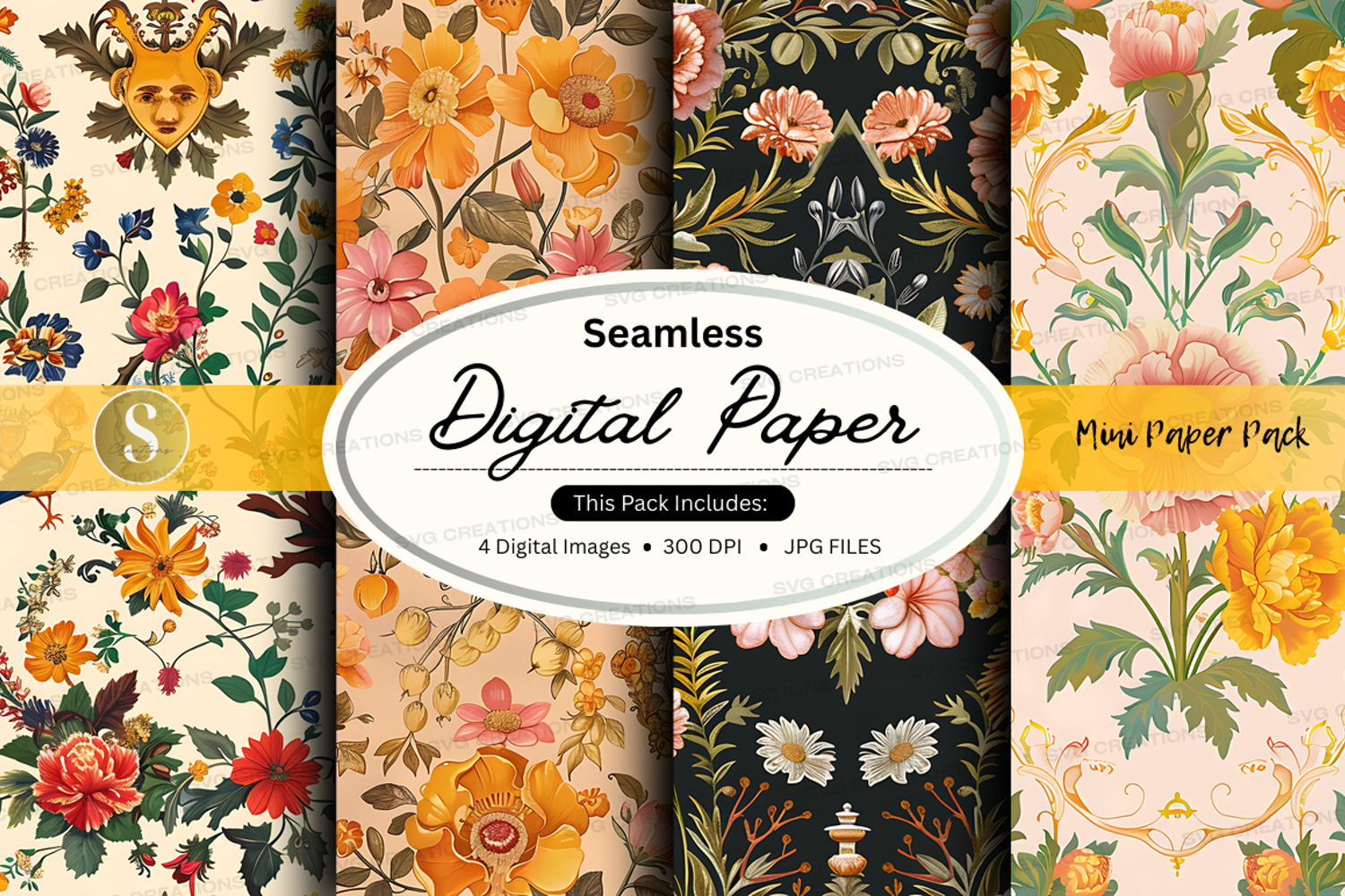 Digital Paper Floral Pattern 300 Dpi Flower Design Seamless Paper Jpeg Files Pattern Pack