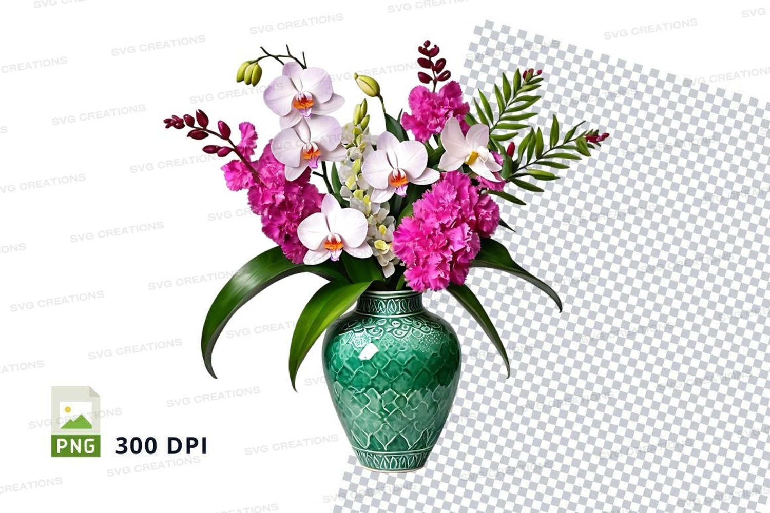 Similar Design Products to Flower bouquet in green vase clipart png