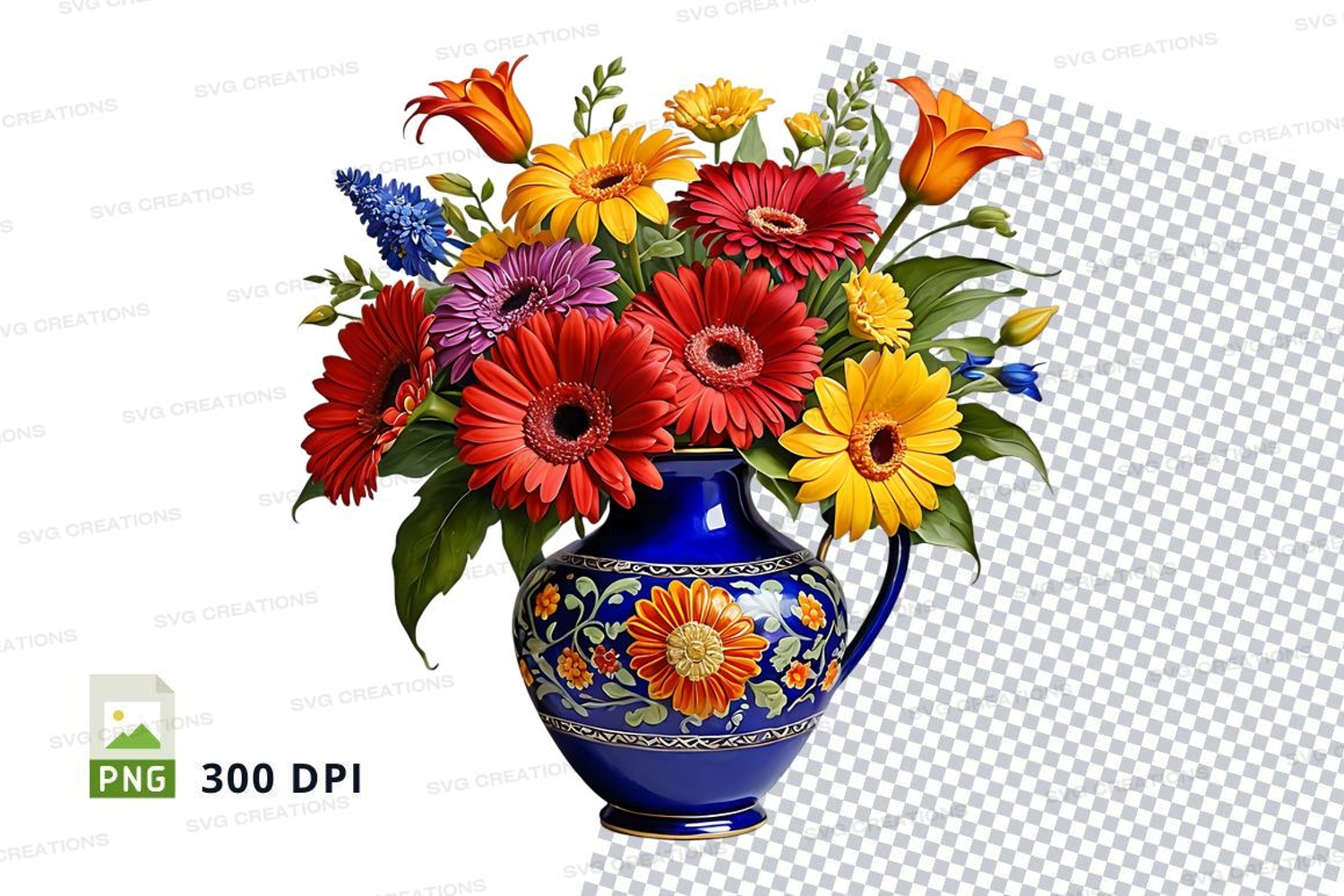 Similar Design Products to Flower bouquet in decorative blue vase clipart png