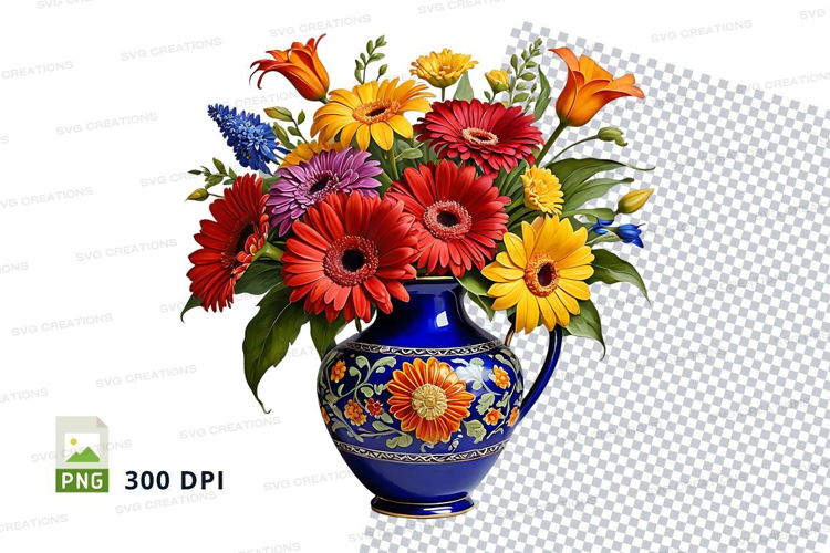 Flower bouquet in decorative blue vase clipart png example image 1