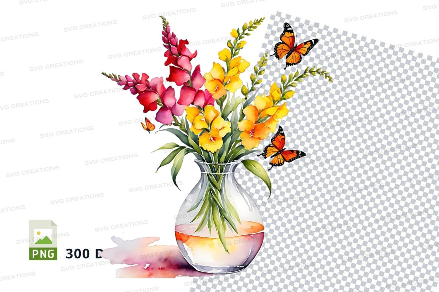 Similar Design Products to Clipart png of a vase with flowers and butterflies